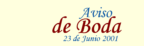 Bienvenido a nuestro sitio Internet dedicado a nuestra boda que se celebrará el 23 de Junio 2001. Descubre la nueva sección reservada a los invitados, se encuentra informaciones y vínculos útiles para tu viaje, y sobretodo, no olvides firmar nuestro libro de recuerdos. Gracias a todos ! Anne-Laure & Romain Atención: Esto es un aviso. Las personas invitadas recibirán una invitación por escrito. |